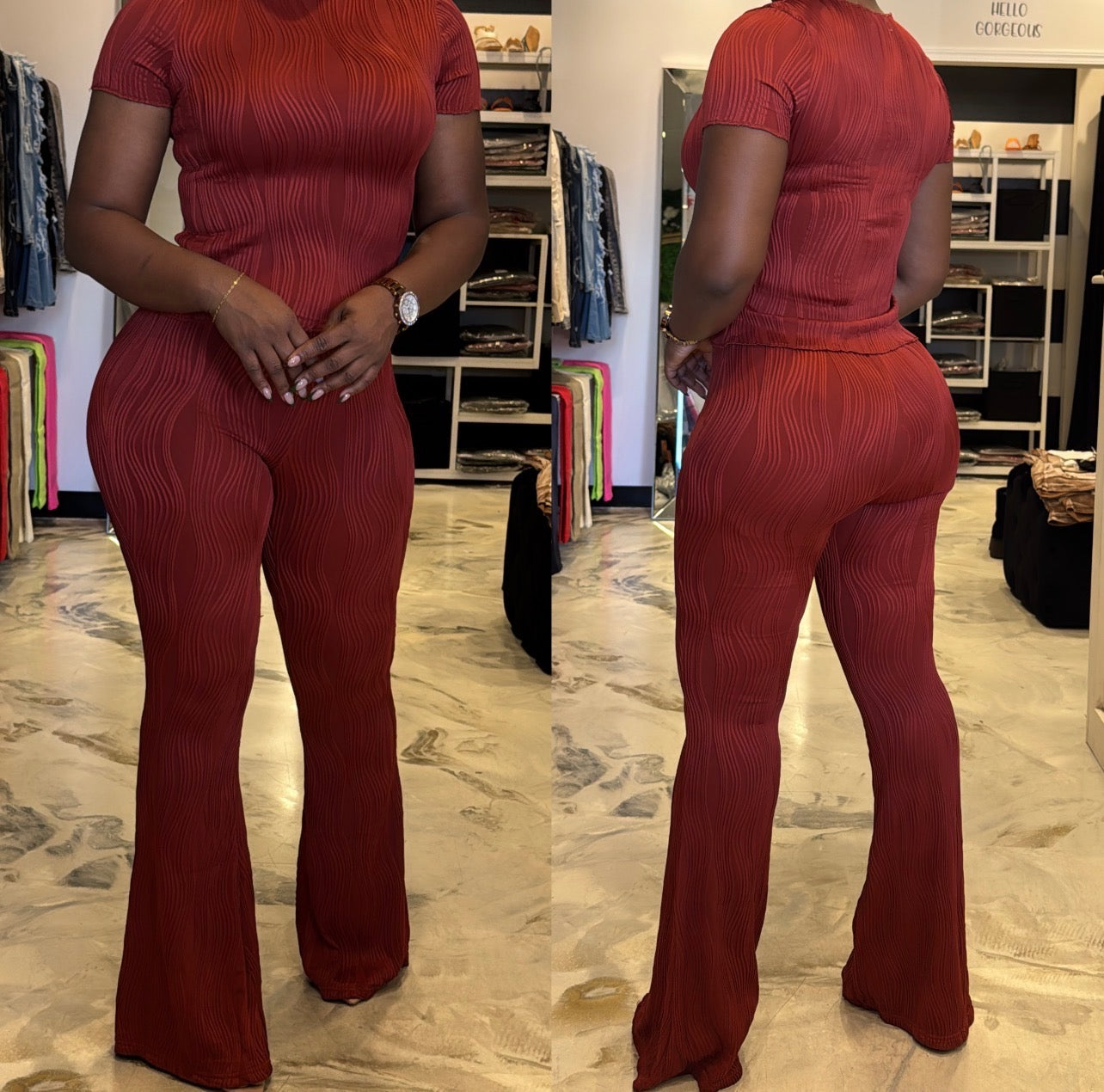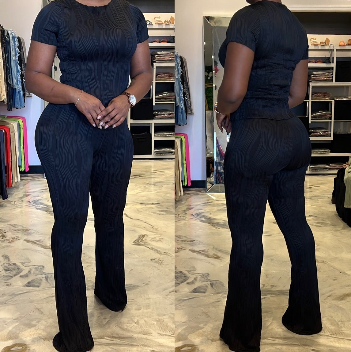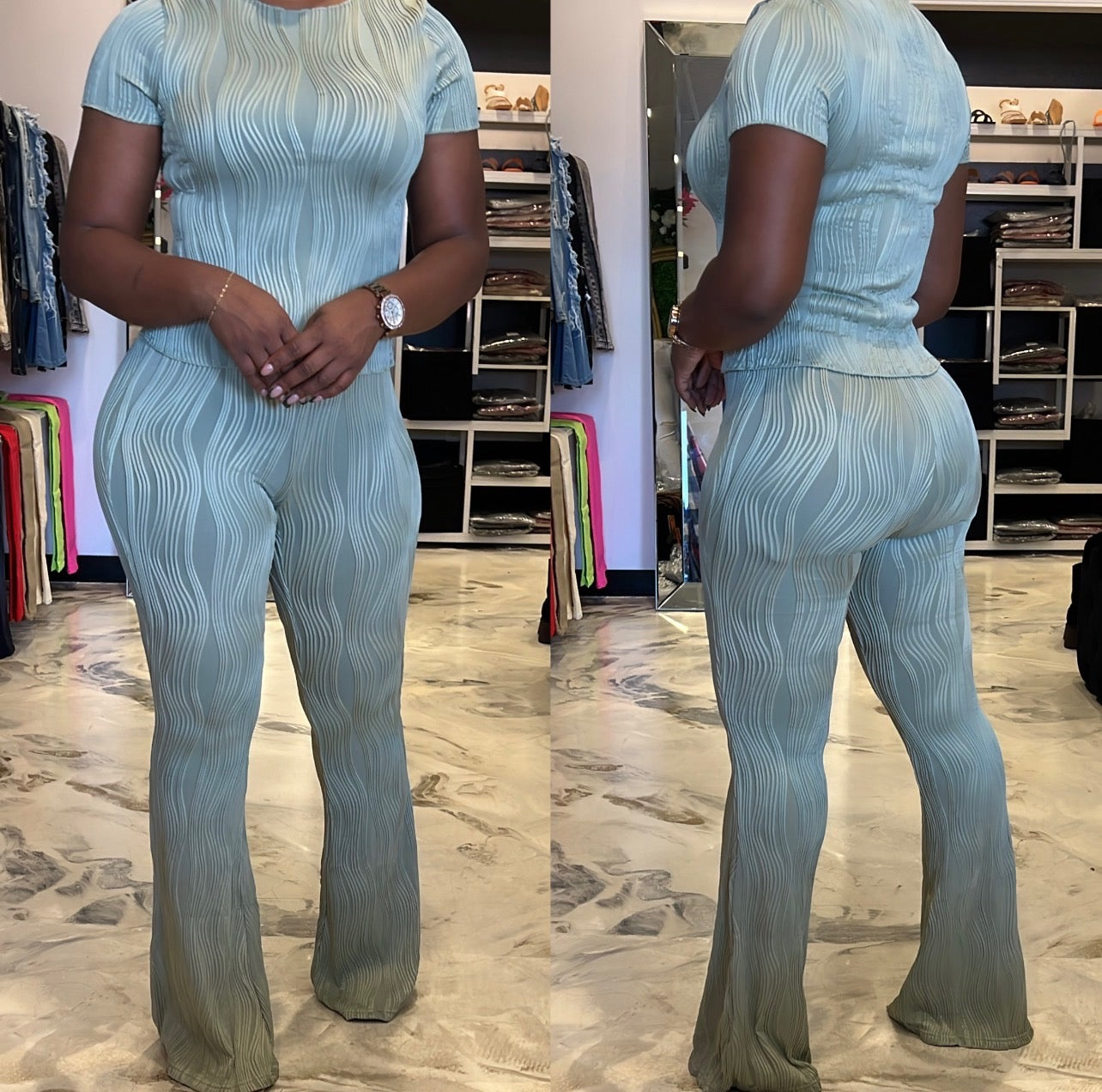 Wavy bliss, texture, fabric fashion setwide open leg fitted style